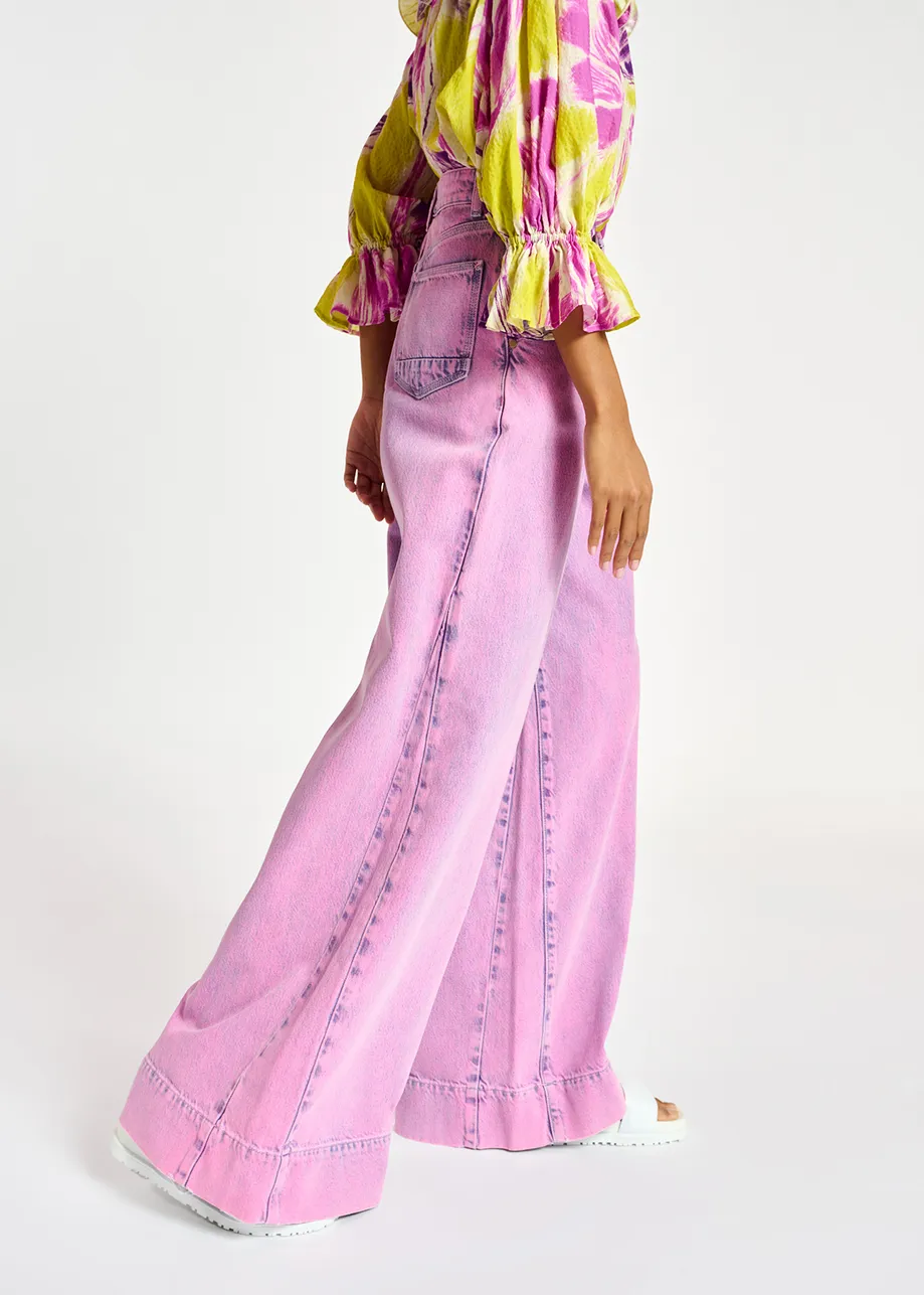Overdyed in a bright hue, this palazzo-inspired pair of jeans proves that everyday denim doesn't need to be boring. The high-rise waist has been detailed with inverted pleats, enhancing the relaxed, wide leg.