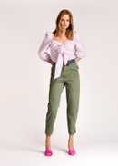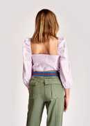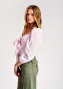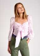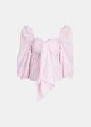 Taking inspiration from peasant styles, our made in Portugal cotton top is feminine, chic, and cool all at the same time. The puffed sleeves, bustier-like neckline and knotted front give our top a light and breezy quality that makes it perfect for both dressed up and casual looks. We suggest pulling your hair back to have the full impact of the sleeves and elegant neckline.
