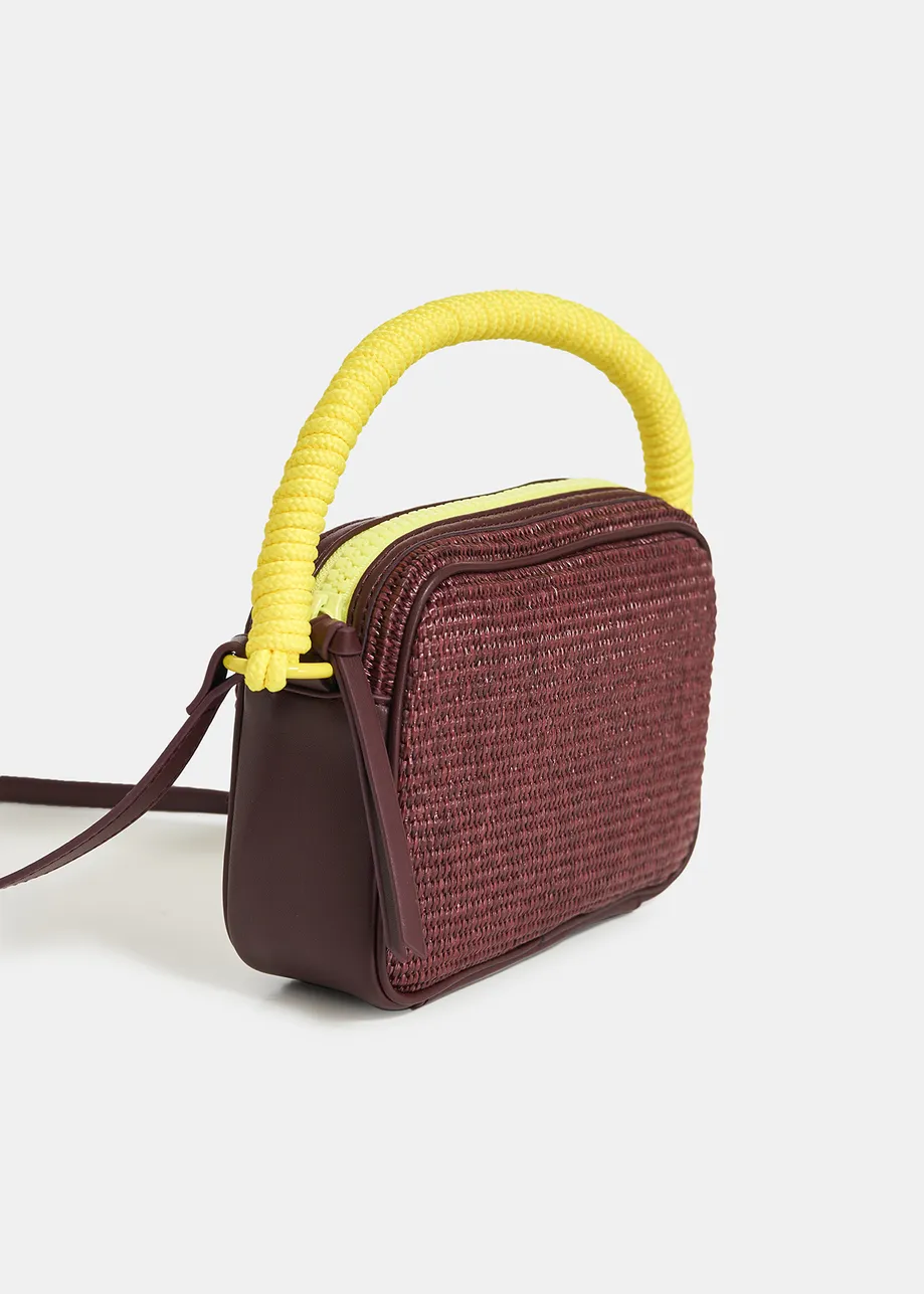 Sac à bandoulière en raphia bordeaux et jaune