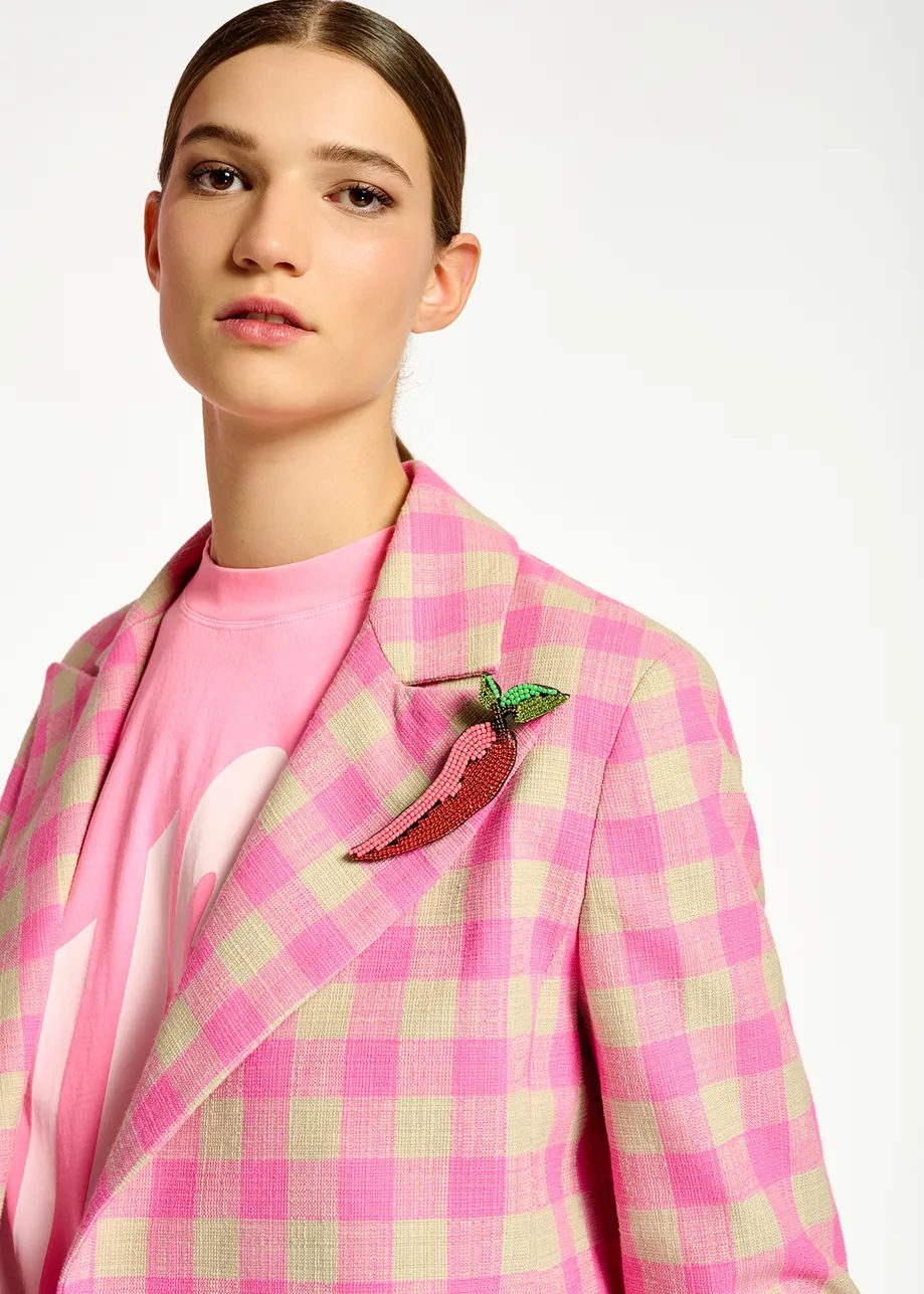 Pink checkered cropped blazer
